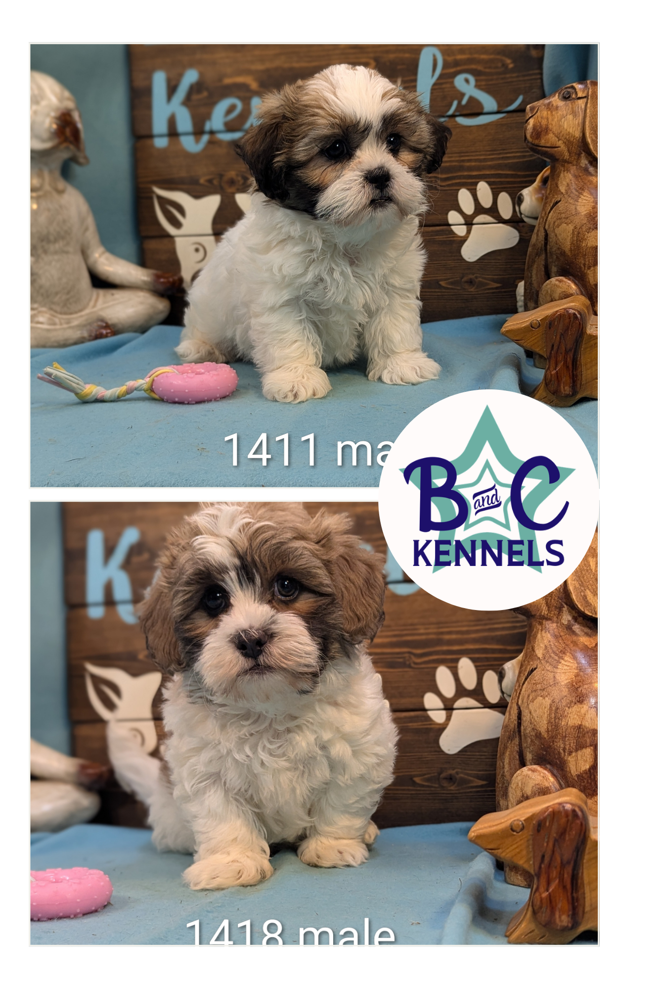 Please click the links to see pictures of the other puppies in the litter or check out Our Instagram or YouTube @BandCpups We will not just send you updated pictures. Pictures are current and puppies are available to come and physically meet.